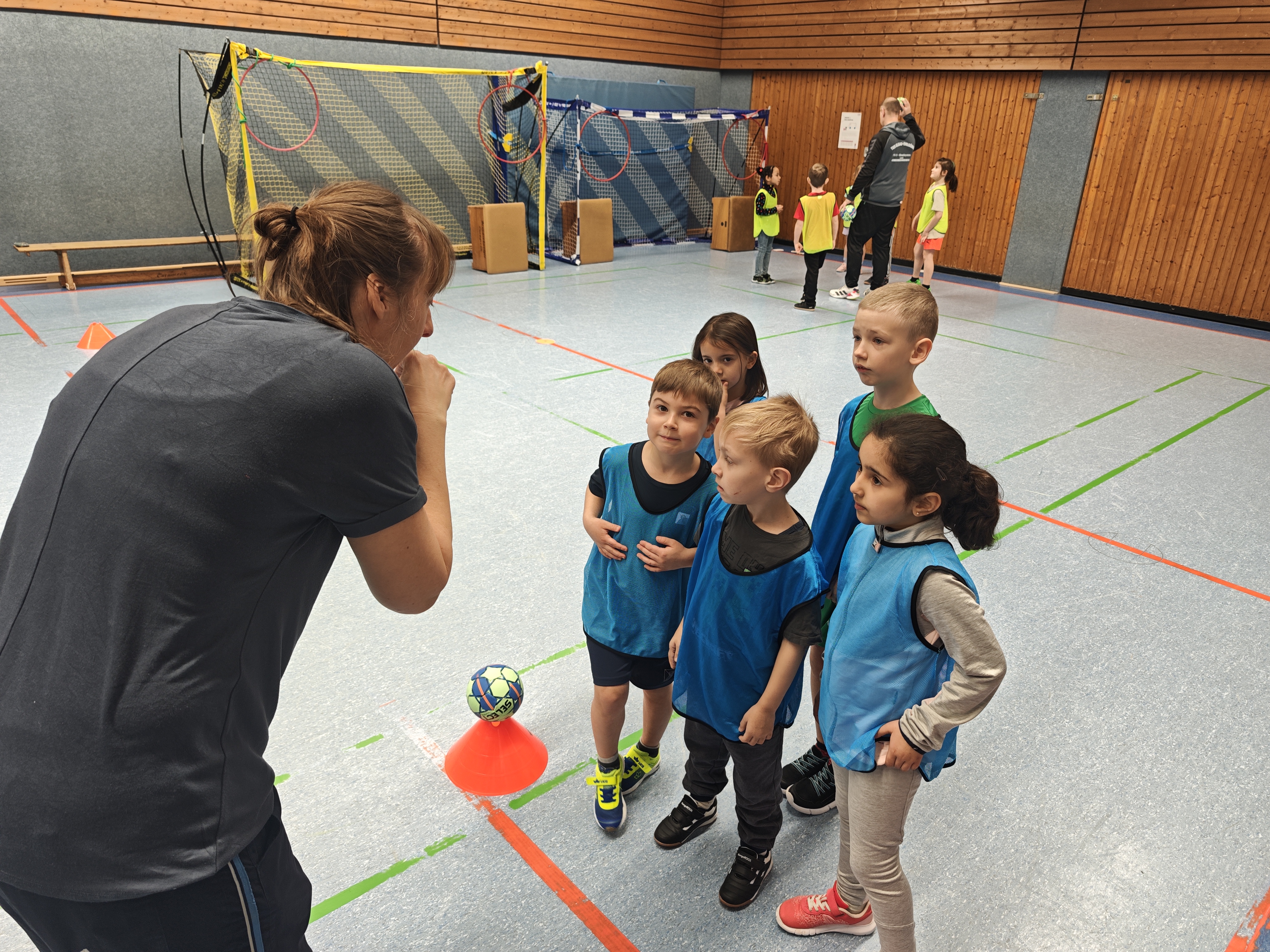 An fünf abwechslungsreichen Stationen konnten die Kinder ihr Ballgeschick, ihre Zielsicherheit und ihre Schnelligkeit unter Beweis stellen. Mit viel Freude und Ehrgeiz sammelten sie an jeder Station Punkte, die auf einem Laufzettel festgehalten wurden. Am Ende durfte sich jedes Kind – je nach erreichter Punktzahl – über eine Bronze-, Silber- oder Goldauszeichnung freuen. Die älteren Klassen hatten zum Abschluss der Sportstunde sogar noch Zeit für ein kleines klasseninternes Handballturnier, bei dem Teamgeist und Fairplay im Mittelpunkt standen.