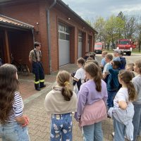 Zum Abschluss der Unterrichtseinheit „Feuer und Feuerwehr“ erlebten die dritten Klassen einen ganz besonderen Tag: Gemeinsam ging es am 16.04.2026 zu Fuß durch den Wald zur Freiwilligen Feuerwehr nach Oldau. Schon der Weg dorthin sorgte für Vorfreude und gute Stimmung – alle waren gespannt, was sie dort erwarten würde.