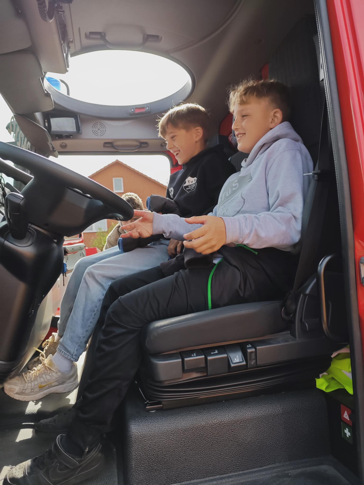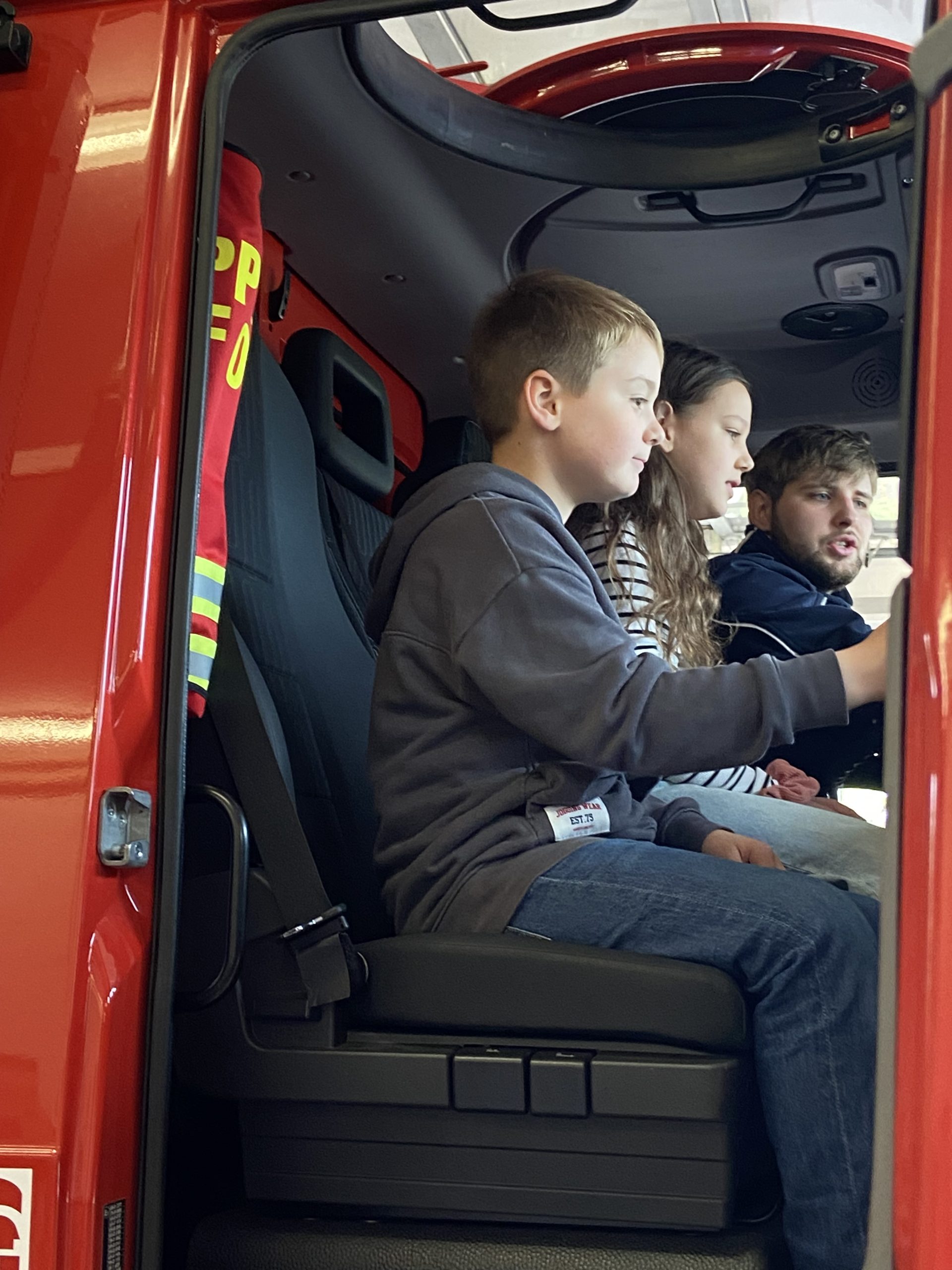 Ein ganz besonderes Highlight war zum Abschluss die Rückfahrt zur Schule in den Feuerwehrautos – ein Moment, den viele Kinder sicher nicht so schnell vergessen werden.