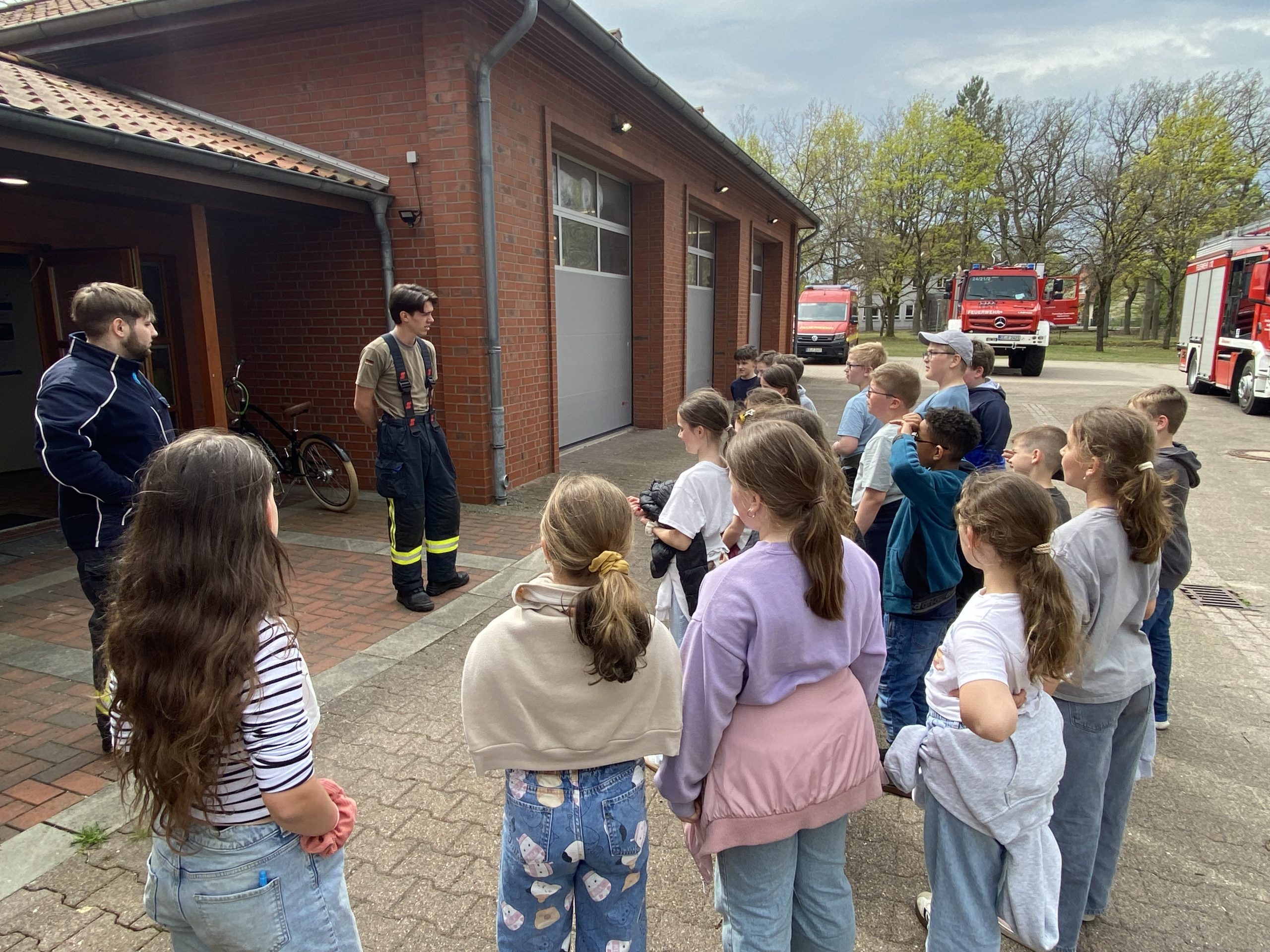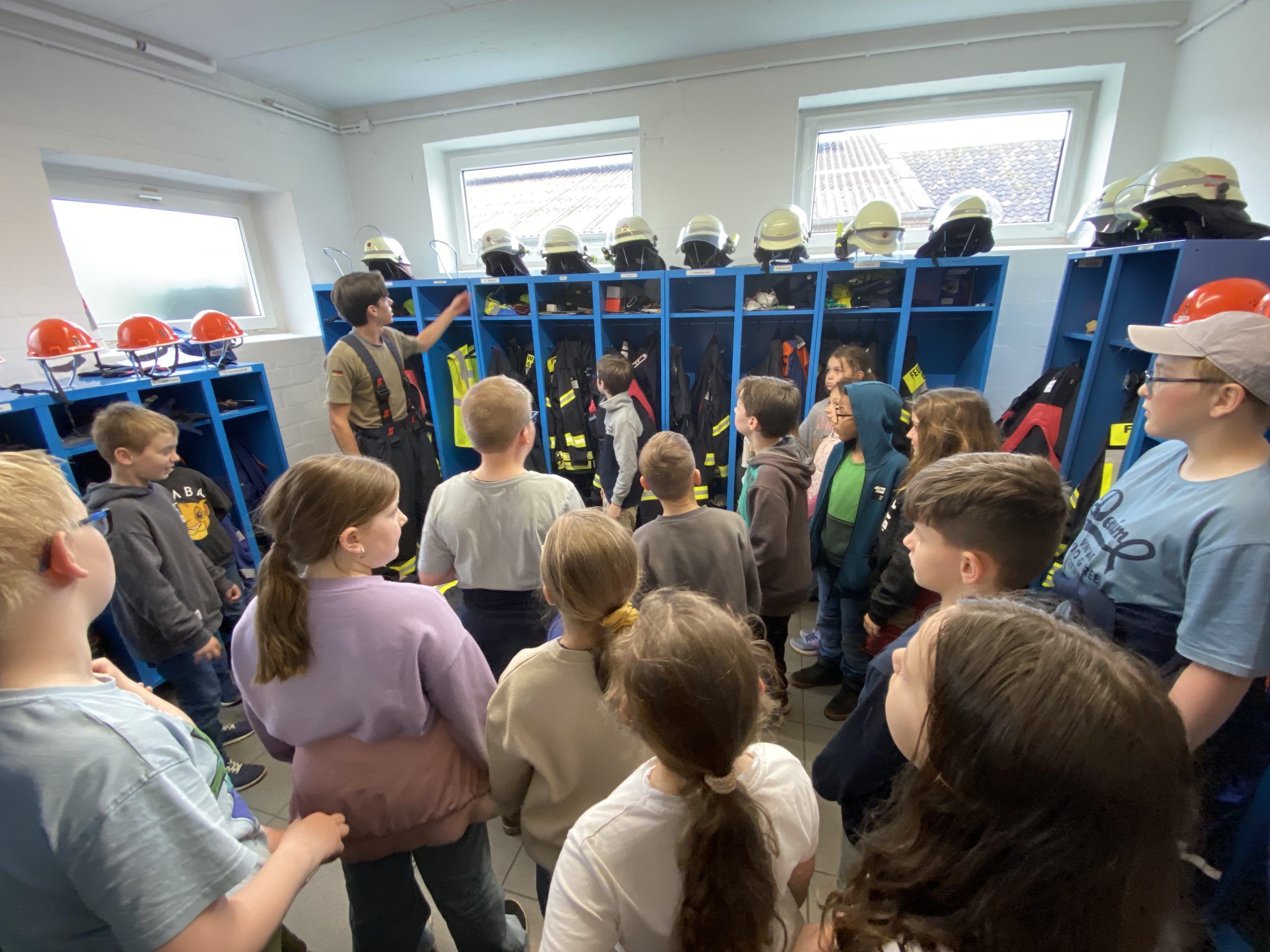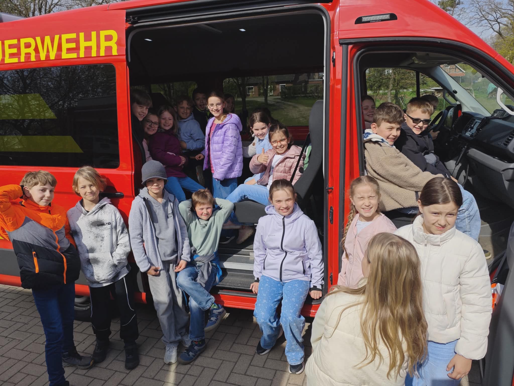 Zum Abschluss der Unterrichtseinheit „Feuer und Feuerwehr“ erlebten die dritten Klassen einen ganz besonderen Tag: Gemeinsam ging es am 16.04.2026 zu Fuß durch den Wald zur Freiwilligen Feuerwehr nach Oldau. Schon der Weg dorthin sorgte für Vorfreude und gute Stimmung – alle waren gespannt, was sie dort erwarten würde.