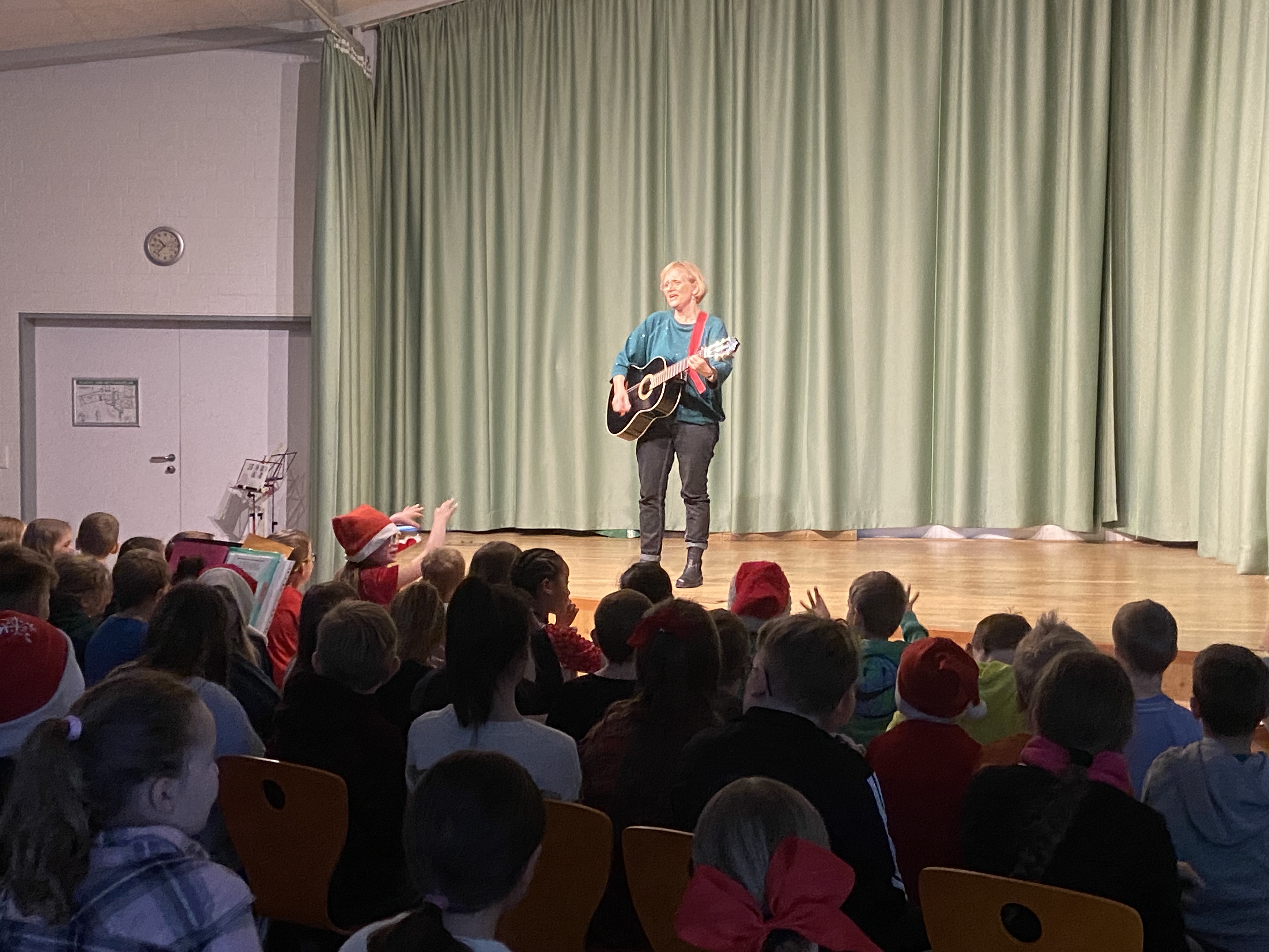 Die Tanz-AG präsentierte einen Line-Dance zu „Last Christmas“. Außerdem wurde das Publikum auf eine wilde Schlittenfahrt mitgenommen in Form von Bodypercussion. Ein Mini-Theaterstück, ein Klatschvers und verschiedene Gedichte wurden aufgeführt. Die Schülerinnen und Schüler der GS Oldau zeigten aber auch ihr Können auf den Instrumenten: Die 4a spielte „Es ist da, unser Christuskind“ auf Ukulelen. Die 3a und die 3b führten jeweils einen Mitspielsatz auf mit diversen Instrumenten. Einige Kinder führten außerdem ihr Können auf verschiedenen Instrumenten wie Klavier, Geige, Akkordeon und Blockflöte vor.