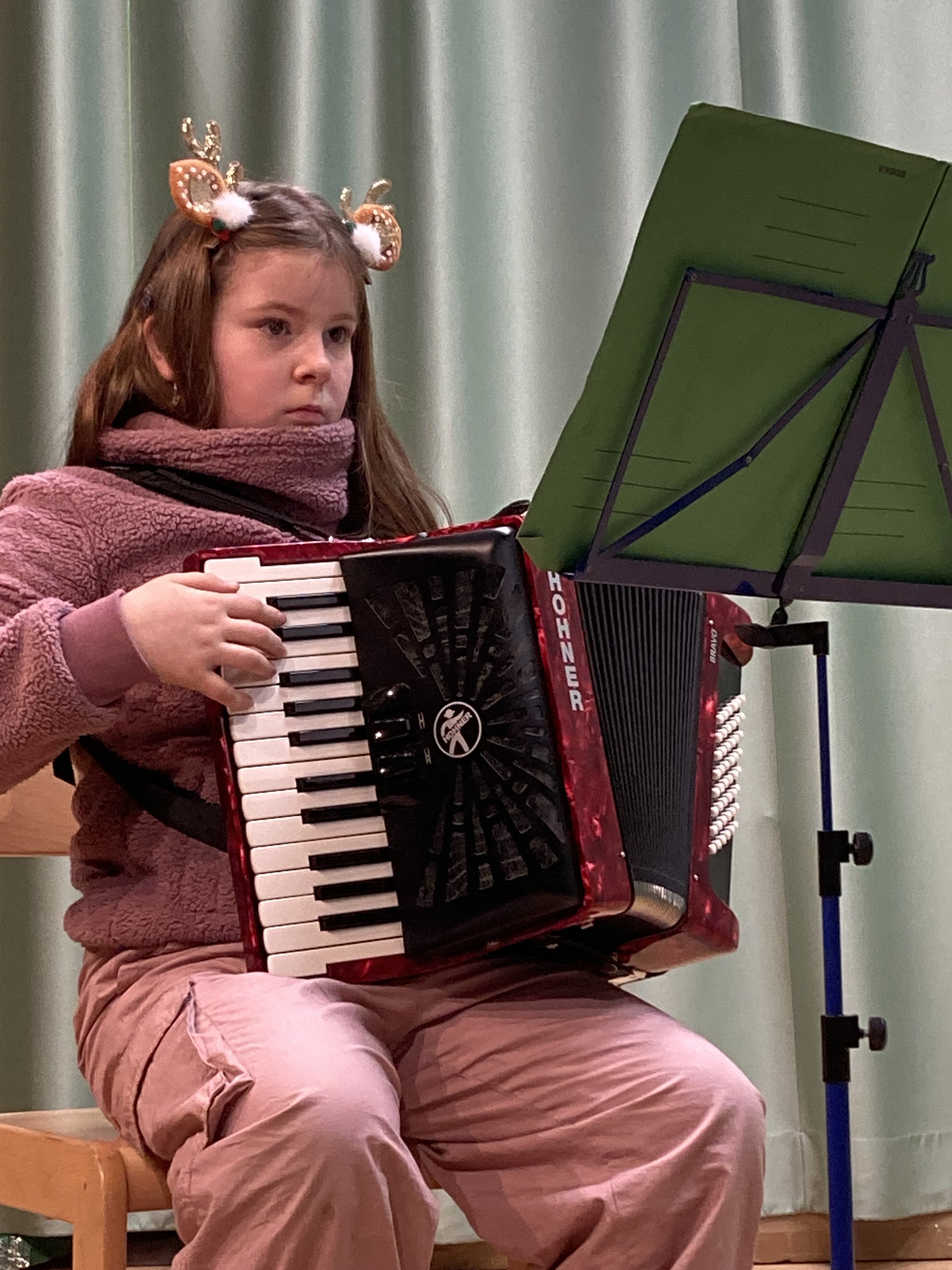Die Tanz-AG präsentierte einen Line-Dance zu „Last Christmas“. Außerdem wurde das Publikum auf eine wilde Schlittenfahrt mitgenommen in Form von Bodypercussion. Ein Mini-Theaterstück, ein Klatschvers und verschiedene Gedichte wurden aufgeführt. Die Schülerinnen und Schüler der GS Oldau zeigten aber auch ihr Können auf den Instrumenten: Die 4a spielte „Es ist da, unser Christuskind“ auf Ukulelen. Die 3a und die 3b führten jeweils einen Mitspielsatz auf mit diversen Instrumenten. Einige Kinder führten außerdem ihr Können auf verschiedenen Instrumenten wie Klavier, Geige, Akkordeon und Blockflöte vor.