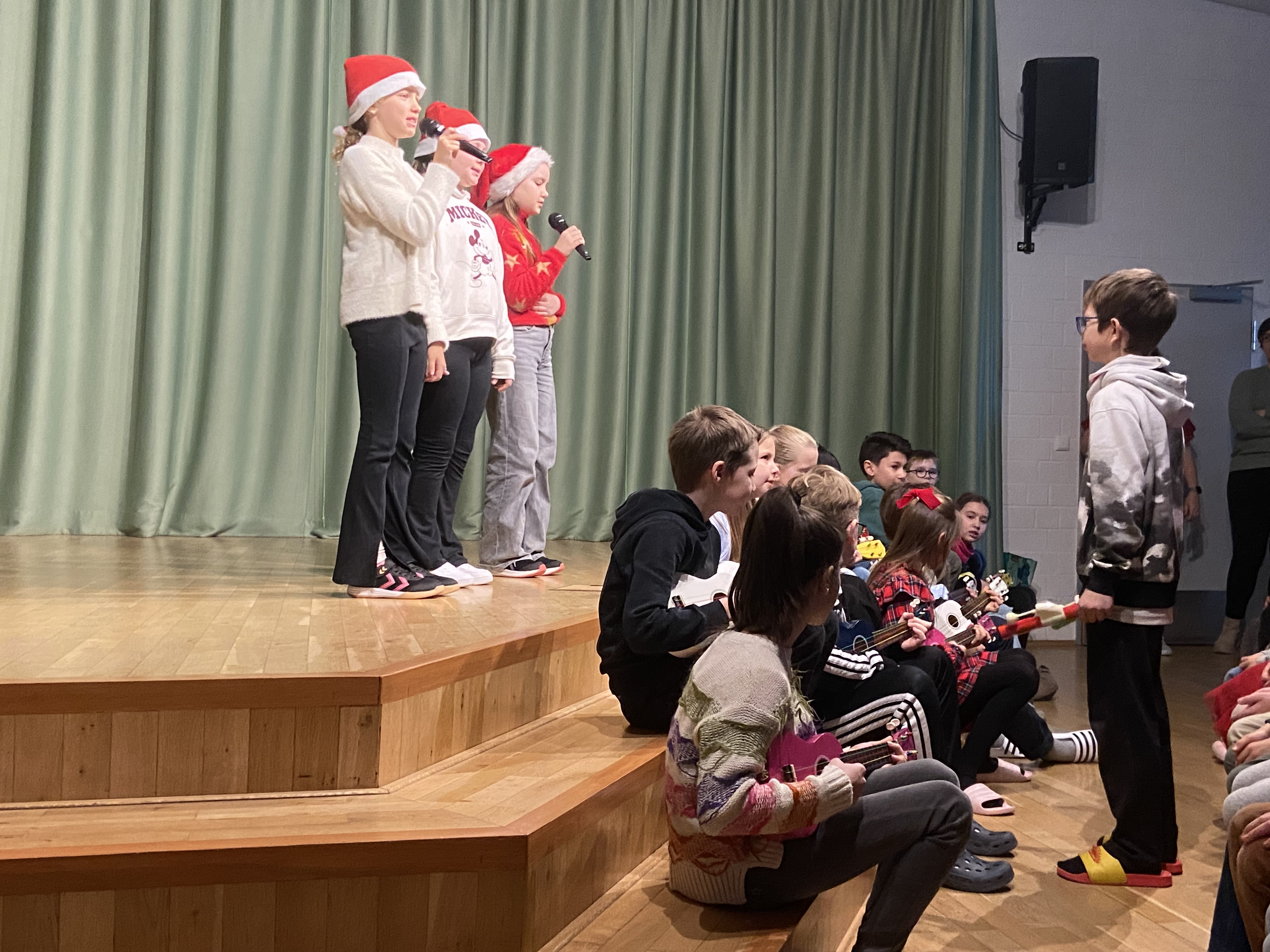 Die Tanz-AG präsentierte einen Line-Dance zu „Last Christmas“. Außerdem wurde das Publikum auf eine wilde Schlittenfahrt mitgenommen in Form von Bodypercussion. Ein Mini-Theaterstück, ein Klatschvers und verschiedene Gedichte wurden aufgeführt. Die Schülerinnen und Schüler der GS Oldau zeigten aber auch ihr Können auf den Instrumenten: Die 4a spielte „Es ist da, unser Christuskind“ auf Ukulelen. Die 3a und die 3b führten jeweils einen Mitspielsatz auf mit diversen Instrumenten. Einige Kinder führten außerdem ihr Können auf verschiedenen Instrumenten wie Klavier, Geige, Akkordeon und Blockflöte vor.