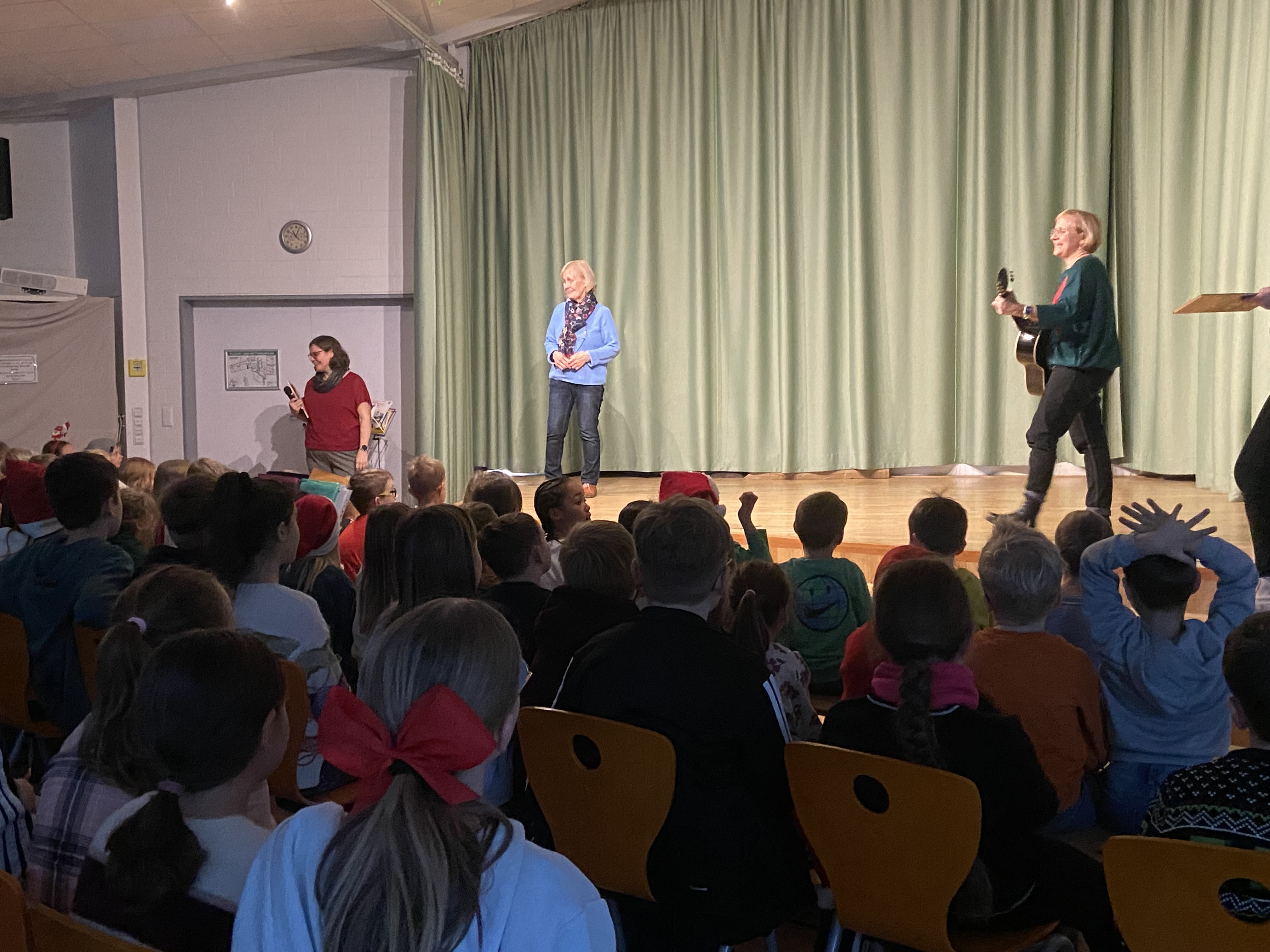 Die Tanz-AG präsentierte einen Line-Dance zu „Last Christmas“. Außerdem wurde das Publikum auf eine wilde Schlittenfahrt mitgenommen in Form von Bodypercussion. Ein Mini-Theaterstück, ein Klatschvers und verschiedene Gedichte wurden aufgeführt. Die Schülerinnen und Schüler der GS Oldau zeigten aber auch ihr Können auf den Instrumenten: Die 4a spielte „Es ist da, unser Christuskind“ auf Ukulelen. Die 3a und die 3b führten jeweils einen Mitspielsatz auf mit diversen Instrumenten. Einige Kinder führten außerdem ihr Können auf verschiedenen Instrumenten wie Klavier, Geige, Akkordeon und Blockflöte vor.