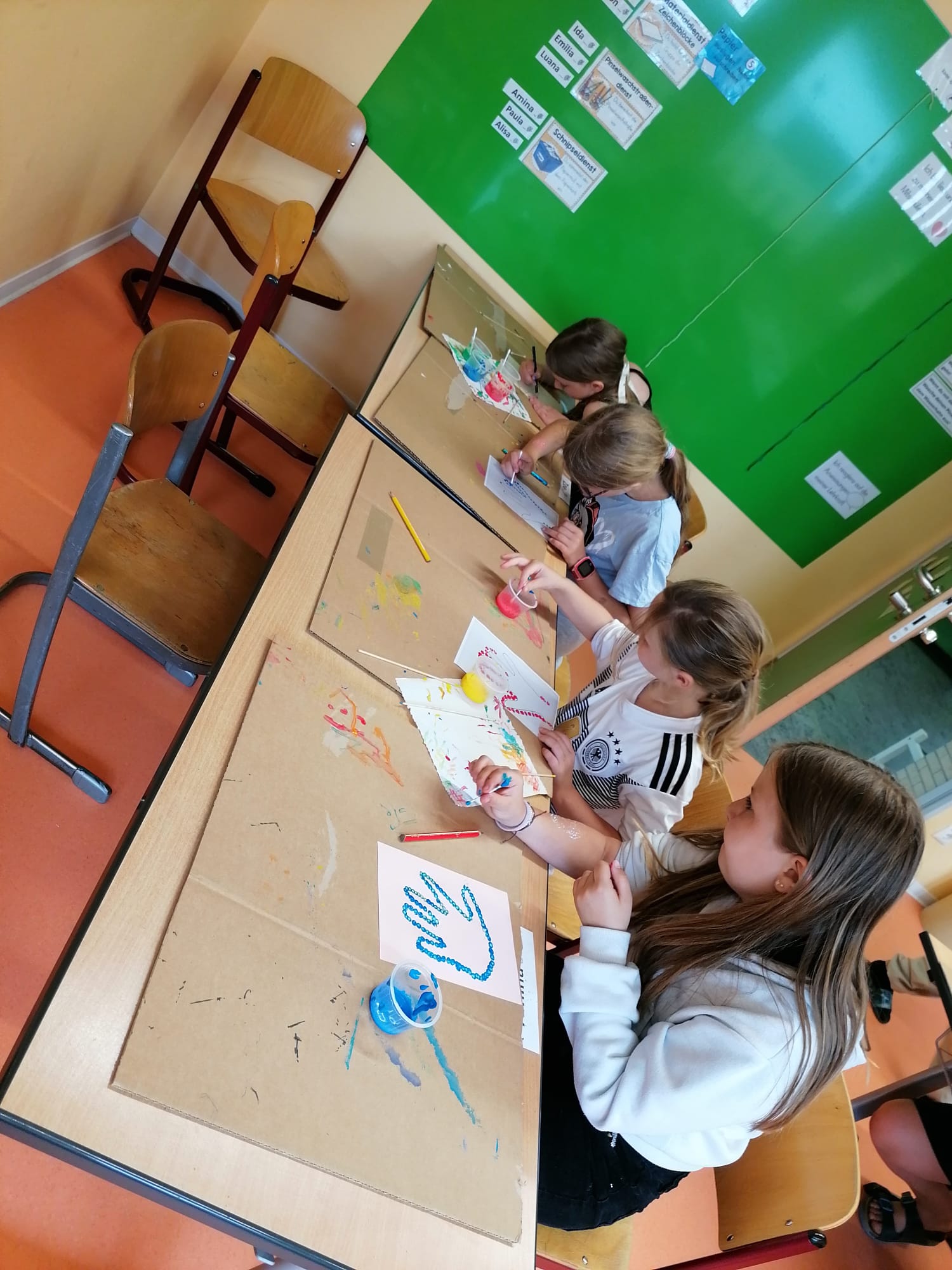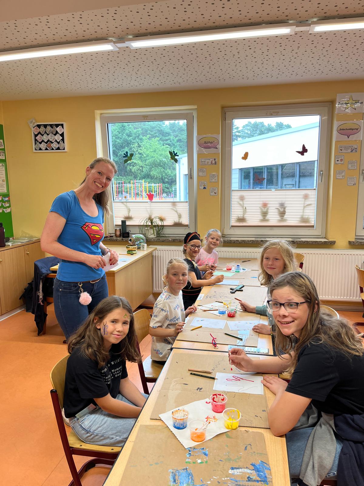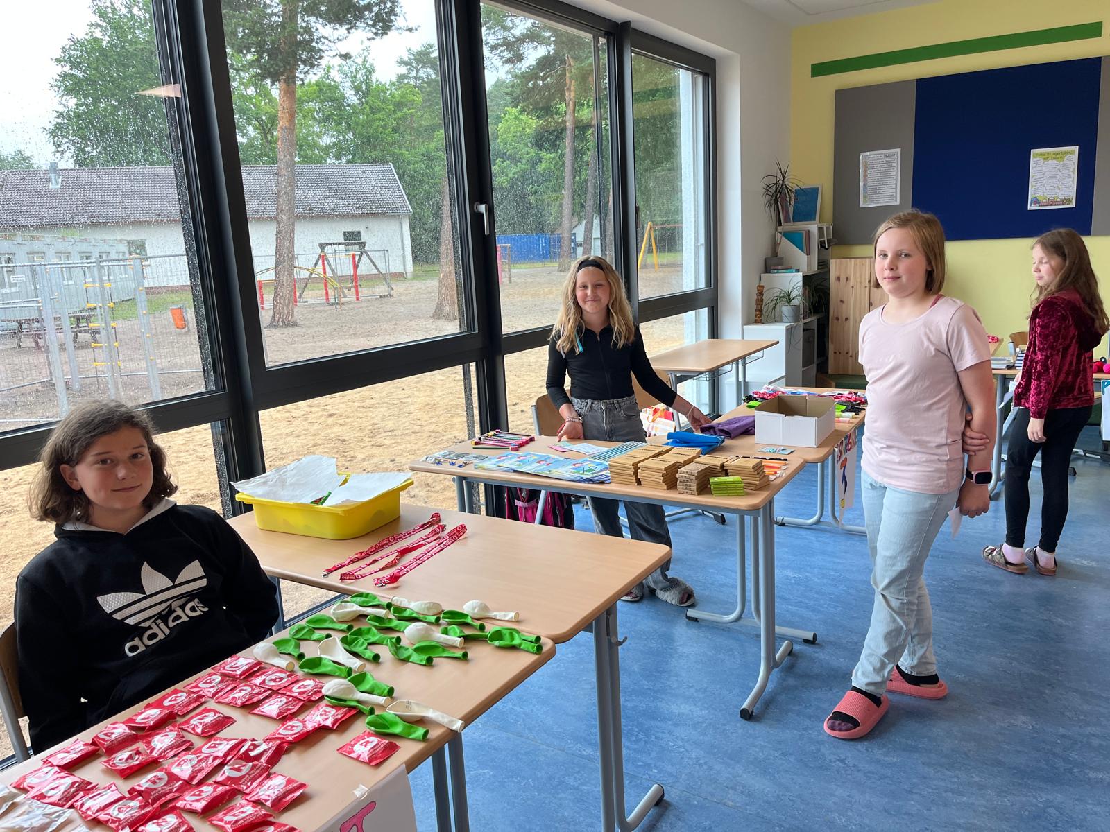 Jede Klasse, ausgewählte AGs und der Ganztag haben ein Angebot für das Schulfest vorbereitet. Mit einer Stempelkarte für die Angebote, haben sich alle auf den Weg durch die gesamte Schule zu den Angeboten gemacht.