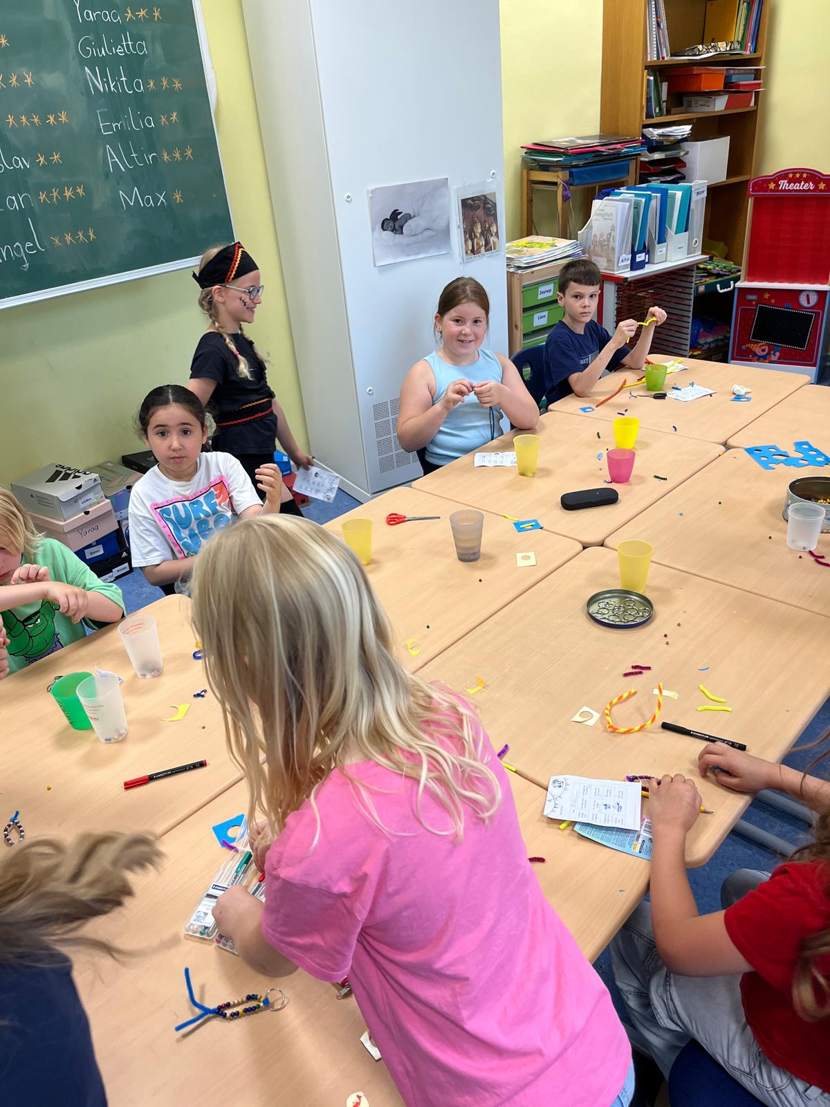 Die Kinder konnten sich schminken lassen, Schlüsselanhänger basteln, durften sich am Dot-Painting ausprobieren oder ihr sportliches sowie motorisches Geschick erproben beim Drei-Bein-Lauf, Wikinger-Schach, Dosenwerfen, Wettangeln, Hoop Lasso und bei der Pirateninsel. In der Sporthalle wurde ein Sinnesparcours aufgebaut und sogar ein Glücksrad mit Preisen von zahlreichen Sponsoren wurde ermöglicht.