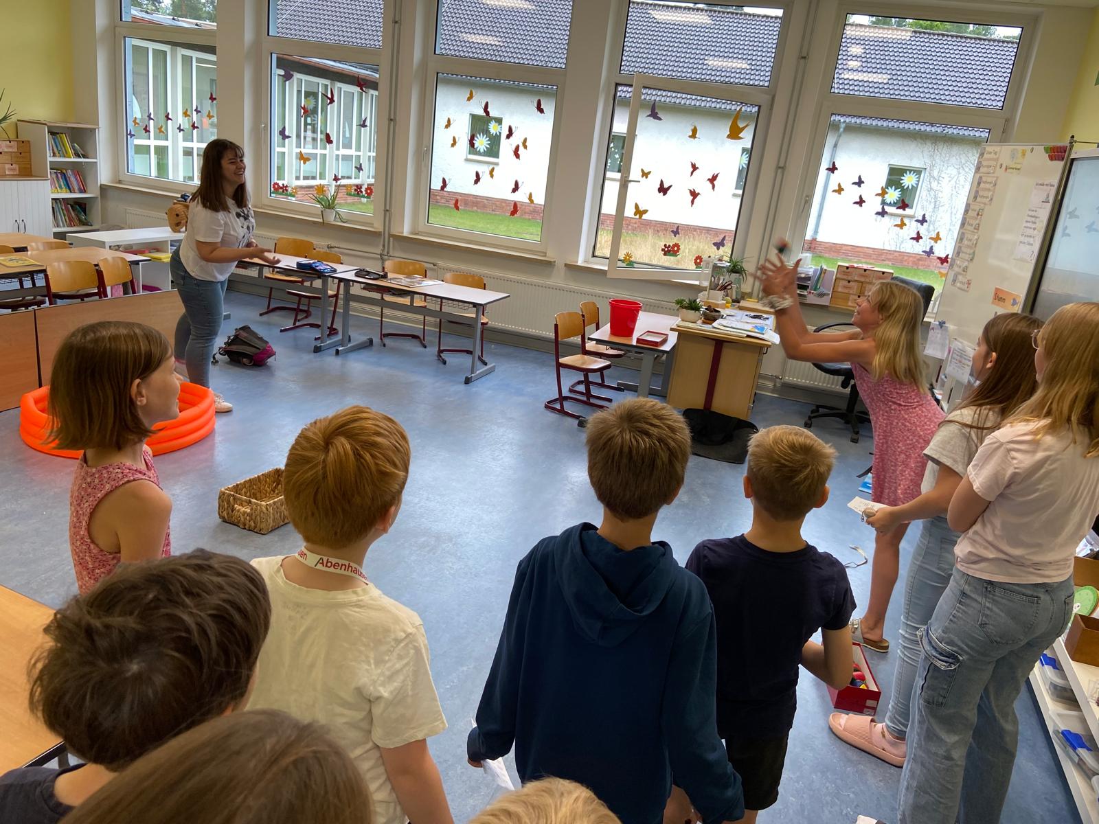 Für den Abschluss des Schulfestes haben sich alle Kinder in der Aula versammelt und gemeinsam das Lied der Grundschule Oldau gesungen. Außerdem hat jedes Kind im Austausch für die Stempelkarte Gummibären als Belohnung erhalten, die der Schulverein bereitgestellt hat.