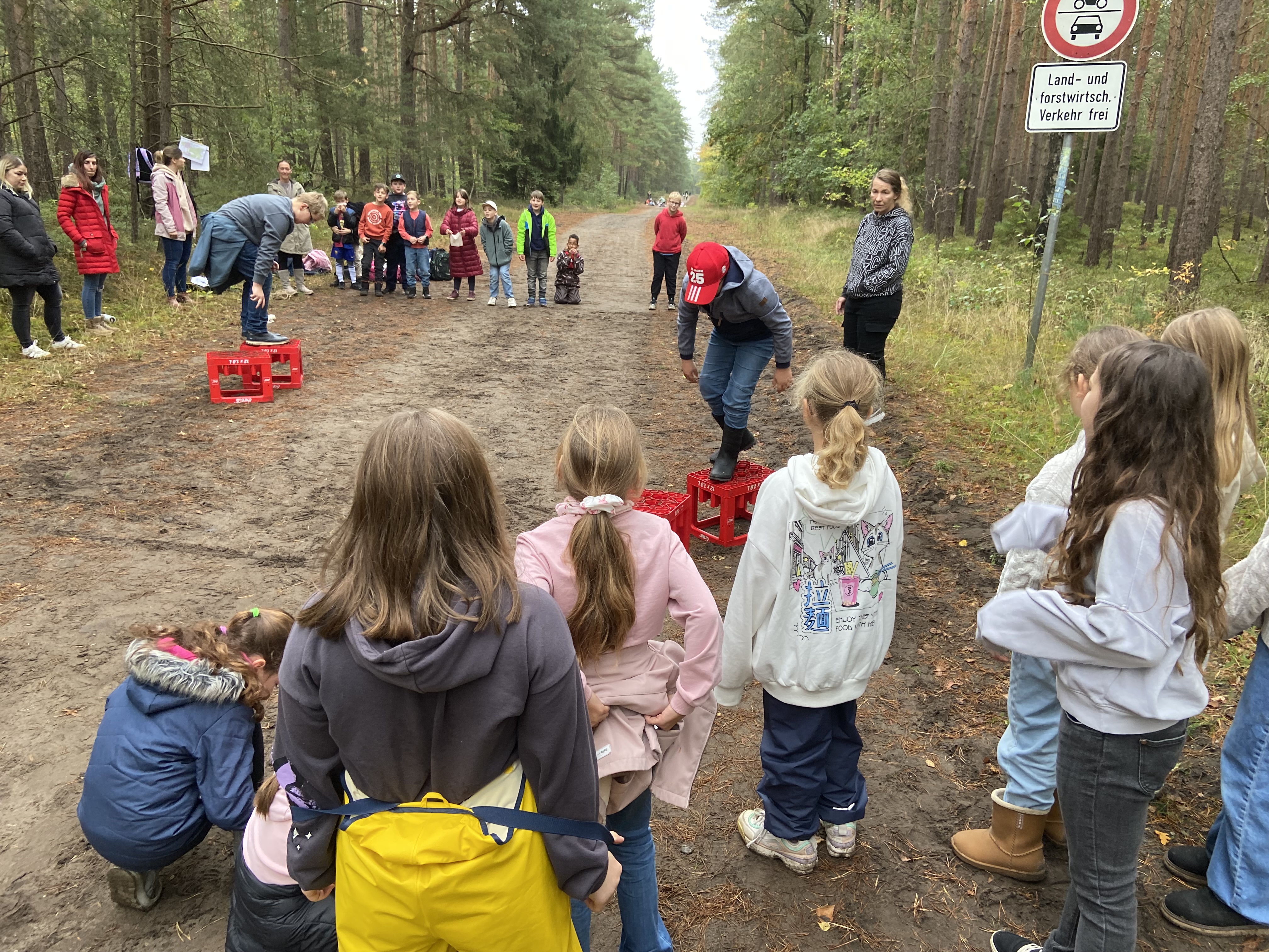 Am 7. Oktober fand am Schulvormittag unser alljährlicher Erlebnistag statt. Trotz der bescheidenen Wettervorhersage trafen sich alle Klassen und der Schulkindergarten – ausgestattet für alle Wetterlagen – auf dem Sportplatz. Dort begrüßte Frau Land alle Kinder, Lehrkräfte sowie Eltern und Angehörige, die am Erlebnistag entweder die Klassen begleitet oder die Stationen beaufsichtigt und erklärt haben.