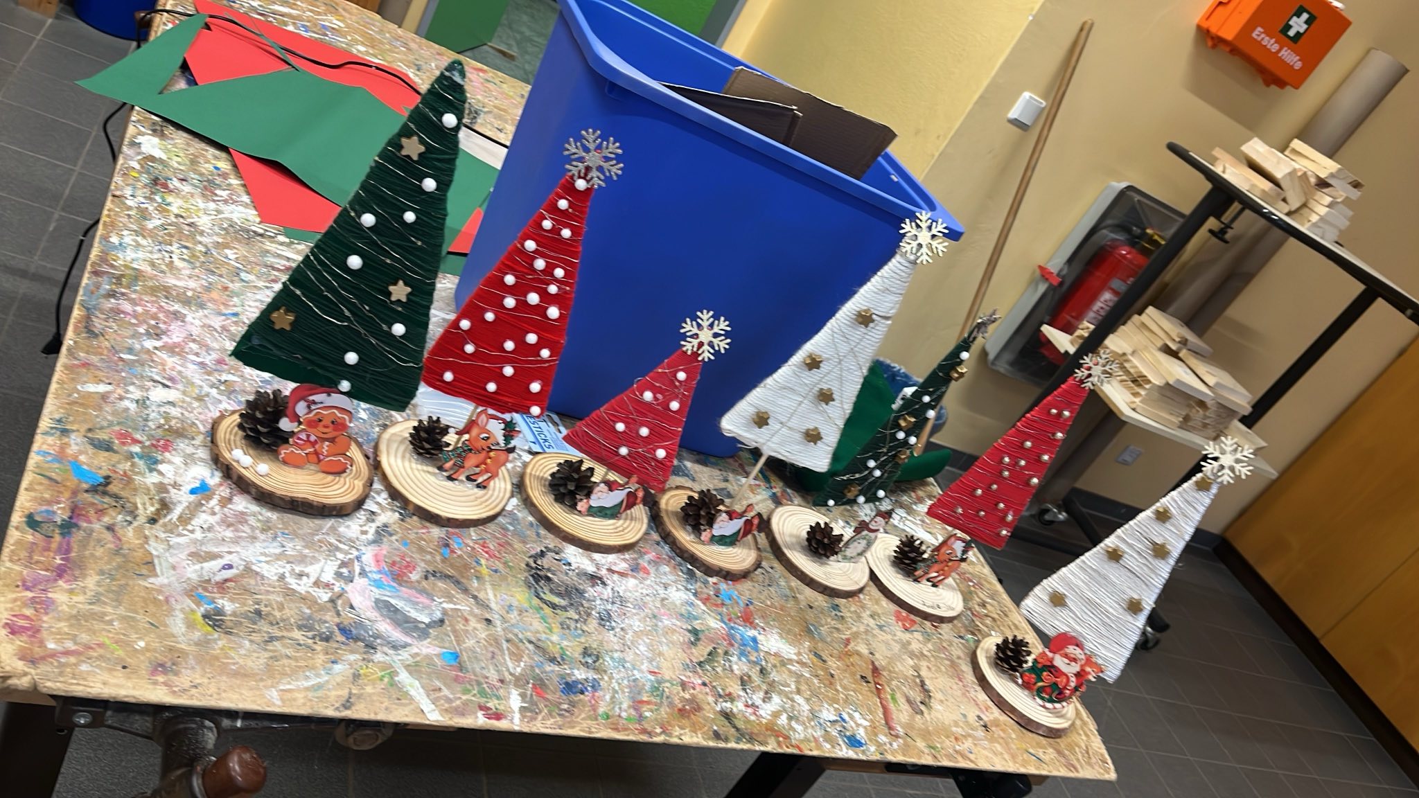 In der letzten Novemberwoche verwandelte sich unsere Schule im Ganztag in eine kleine Weihnachtswerkstatt. Die Mitarbeiter*innen des Ganztages hatten für die Projektwoche zahlreiche kreative Angebote, kunstvolle Bastelaktionen, eine kleine Theatergruppe und einige Mitmachaktionen vorbereitet.