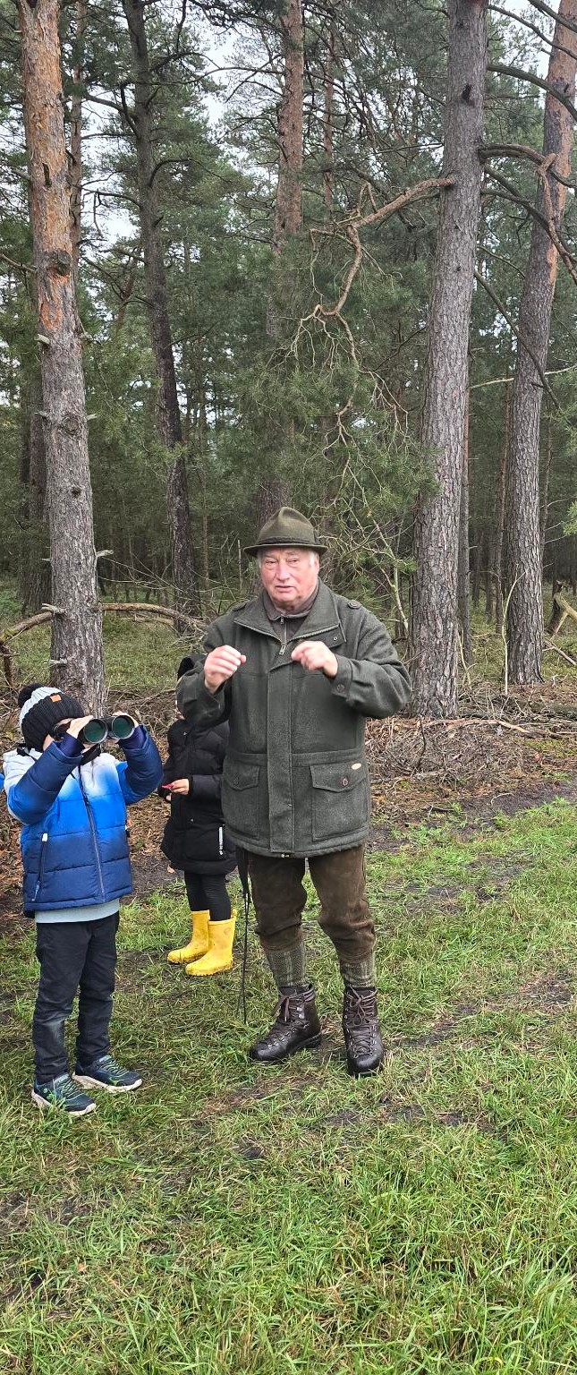 Ein besonderes Highlight war der Besuch eines professionellen Jägers, der eine kleine Gruppe mit durch den Wald nahm. Dort erklärte er kindgerecht, welche Tiere im Winter unterwegs sind, wie der Wald sich in der kalten Jahreszeit verändert und welche Aufgaben ein Jäger hat. Die Kinder lauschten ihm gespannt und konnten im Anschluss ihre Fragen stellen.