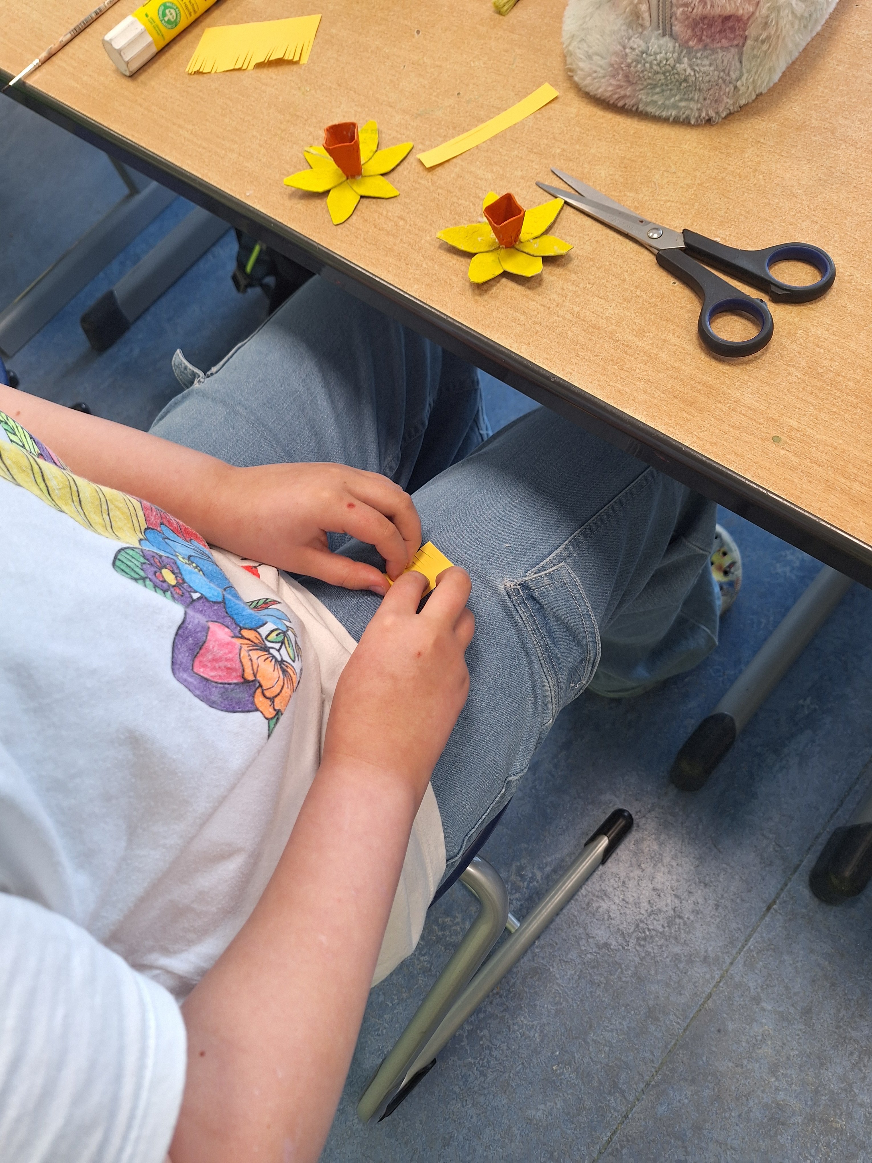 In der Turnhalle gab es eine bunte Auswahl an kreativen Spielen rund um das Thema Upcycling. Die Kinder haben genäht, Gläser und Tassen bepflanzt, alte Ausmalbilder wiederentdeckt und für Ostern wunderschön gebastelt. Besonders beeindruckend war unsere Kork- und Eierkarton-AG, die als Ergebnis selbstgemachte Herzbilder und Osterglocken hervorbrachte. Das Highlight war unsere kreative Modewerkstatt: Hier haben die Kinder aus ganz unterschiedlichen Verbrauchsmaterialien, Dekoresten und Bastelmaterialien eigene Mode geschaffen und ihre eigene kleine Modenschau auf die Beine gestellt. Die Modenschau wird allen Ganztagskindern am Dienstag nach den Osterferien präsentiert.