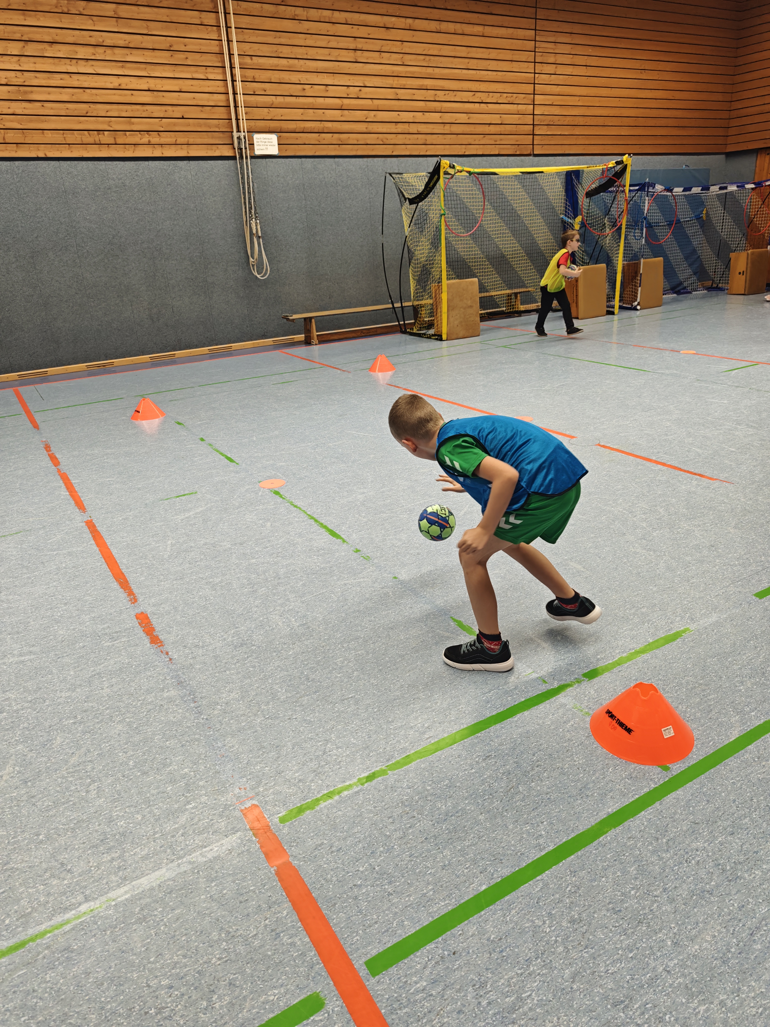 An fünf abwechslungsreichen Stationen konnten die Kinder ihr Ballgeschick, ihre Zielsicherheit und ihre Schnelligkeit unter Beweis stellen. Mit viel Freude und Ehrgeiz sammelten sie an jeder Station Punkte, die auf einem Laufzettel festgehalten wurden. Am Ende durfte sich jedes Kind – je nach erreichter Punktzahl – über eine Bronze-, Silber- oder Goldauszeichnung freuen. Die älteren Klassen hatten zum Abschluss der Sportstunde sogar noch Zeit für ein kleines klasseninternes Handballturnier, bei dem Teamgeist und Fairplay im Mittelpunkt standen.